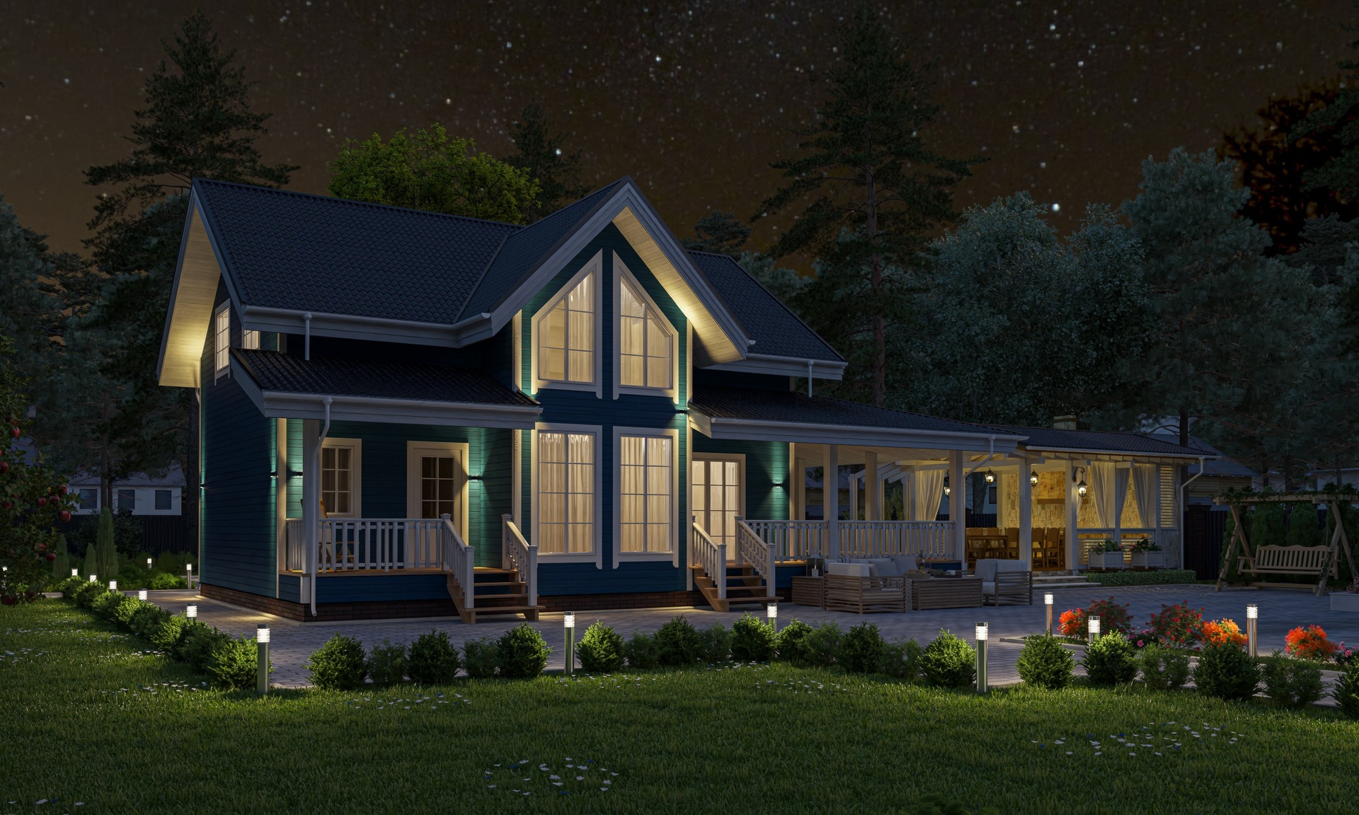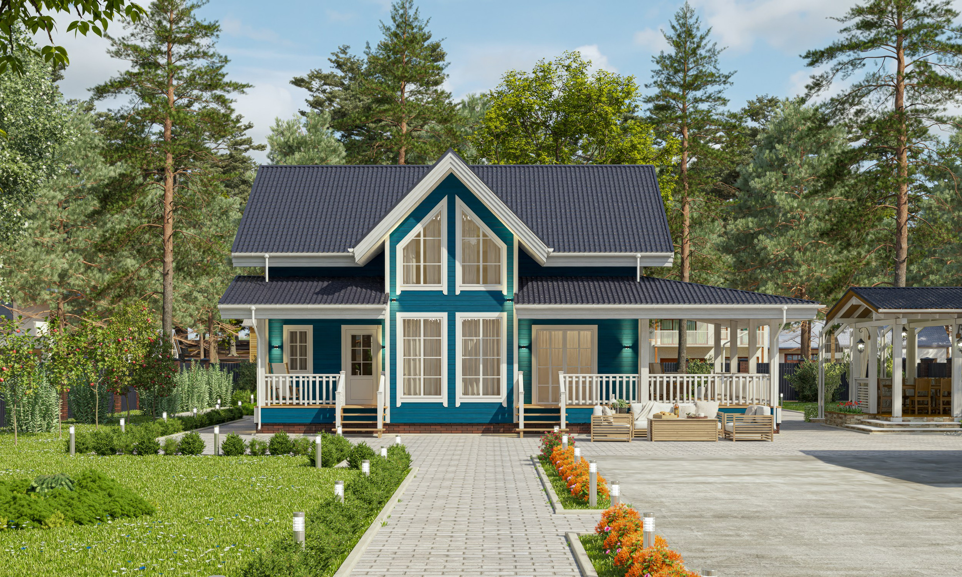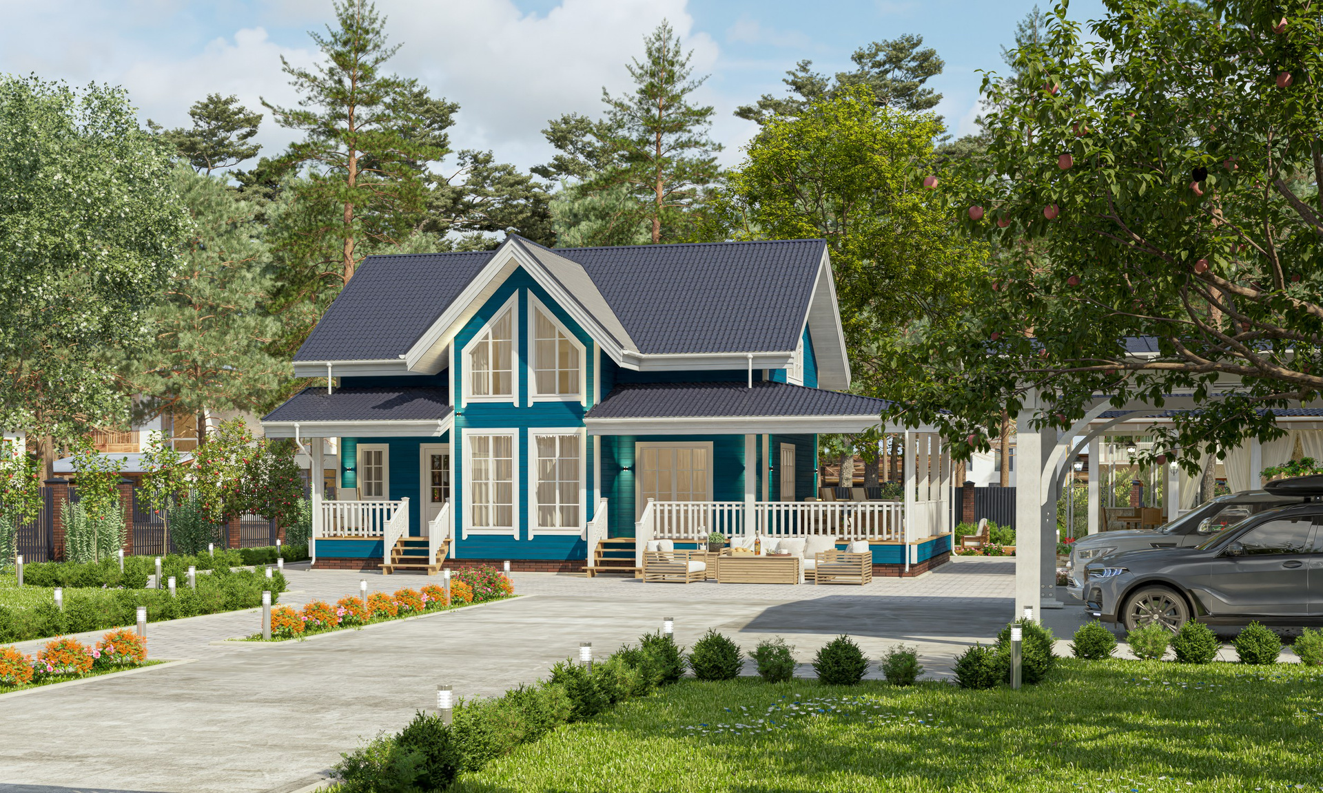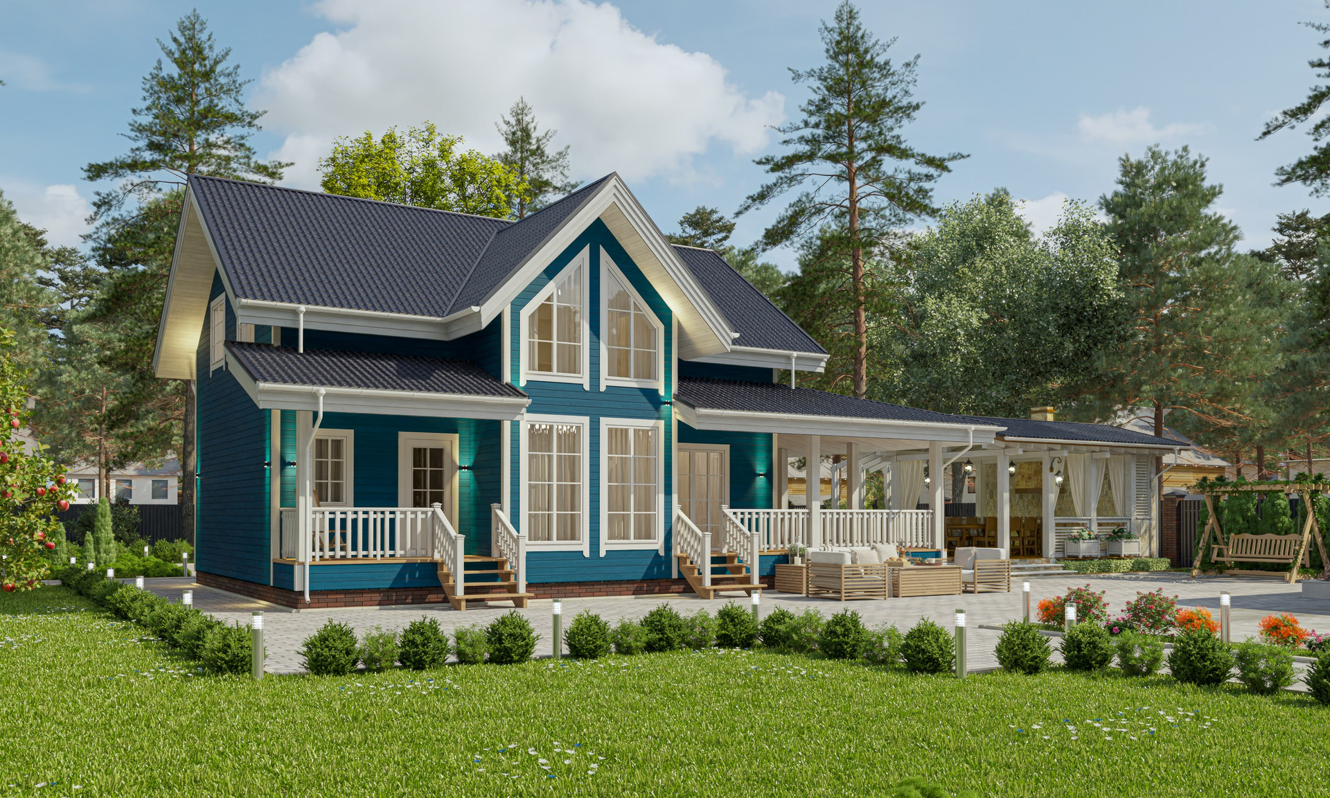 Дизайн-проект визуализации каркасного дома «Проект А-X3-2021»