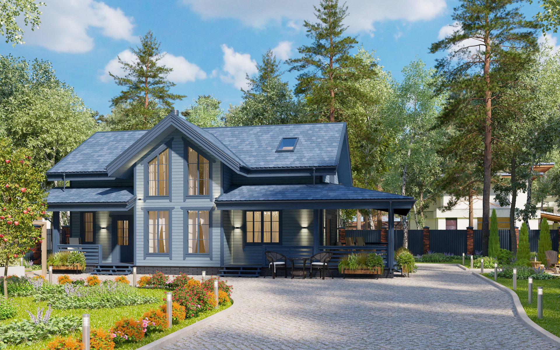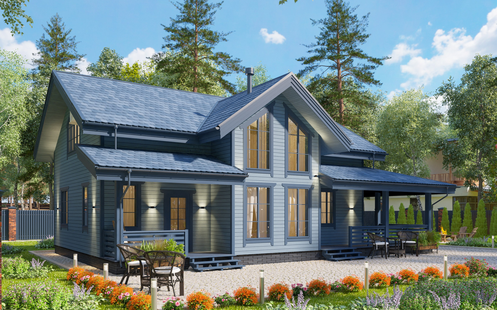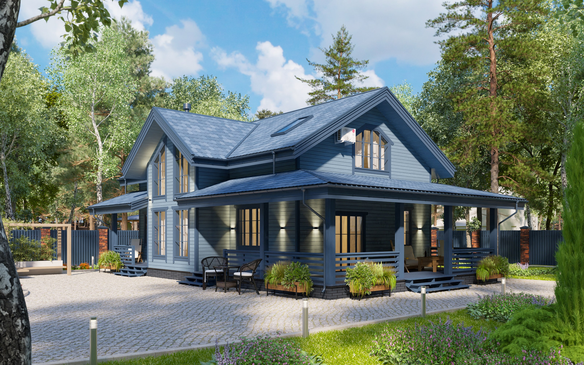 Дизайн-проект визуализации каркасного дома «Проект А-X3-2021»