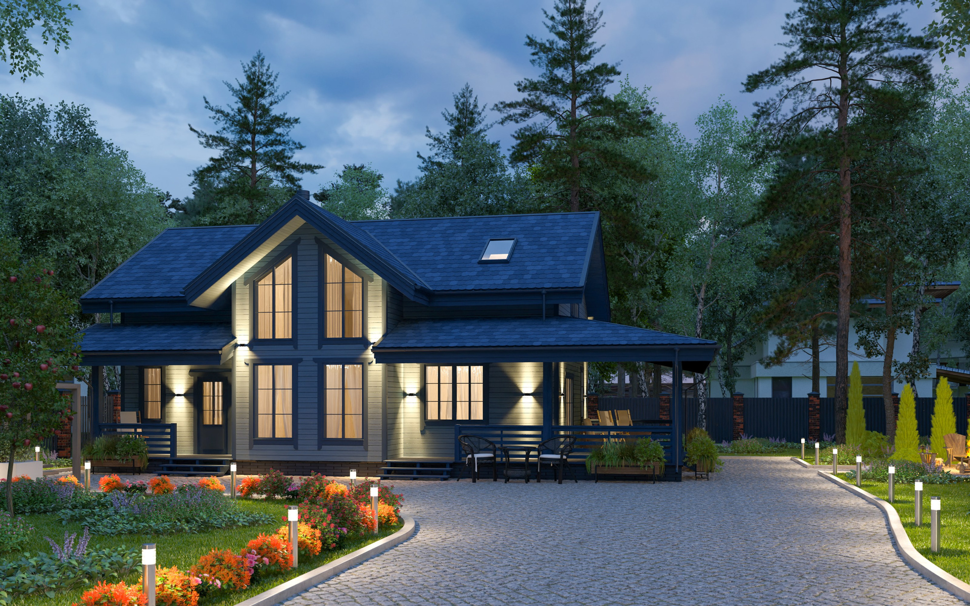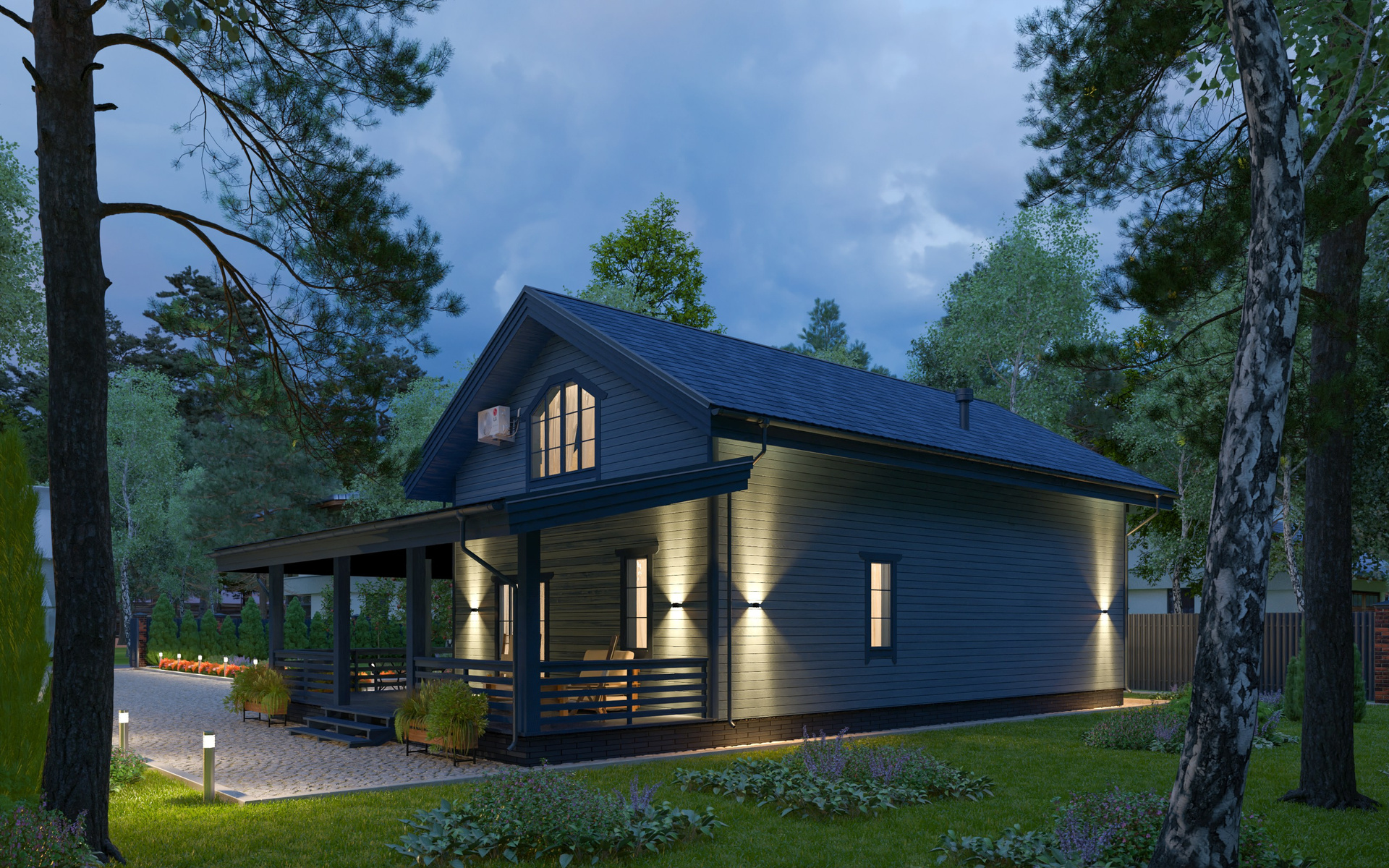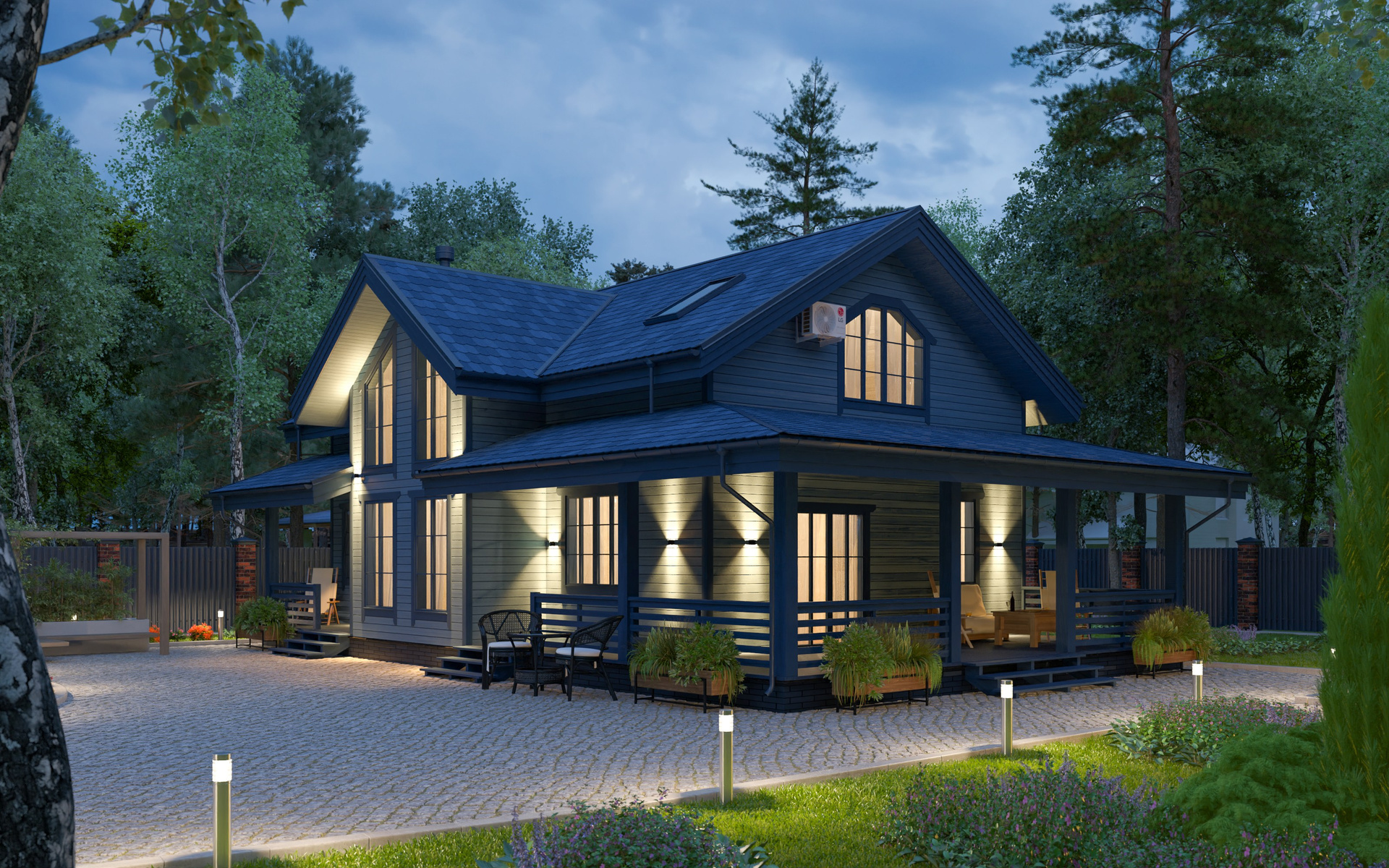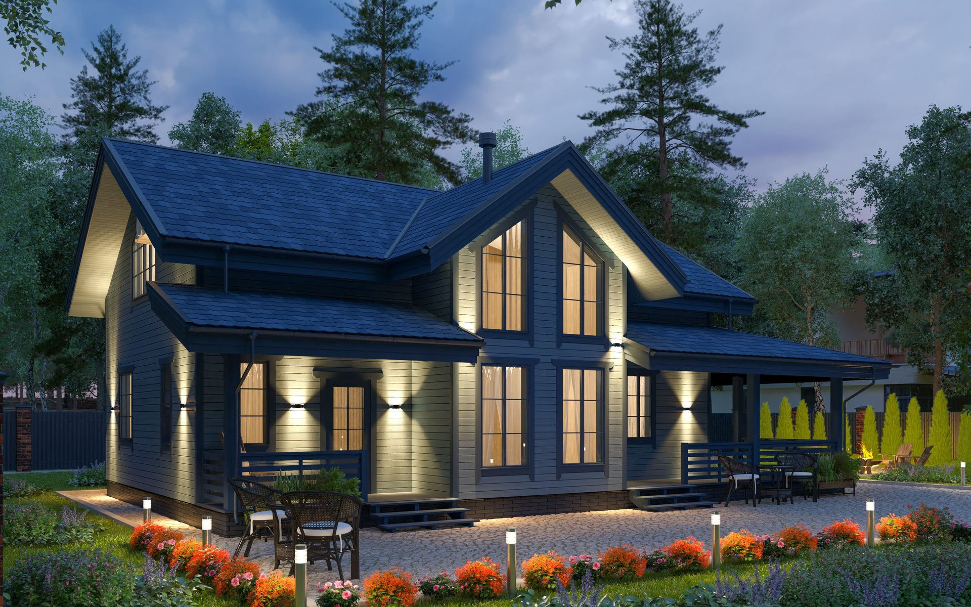 Дизайн-проект визуализации каркасного дома «Проект А-X3-2021»